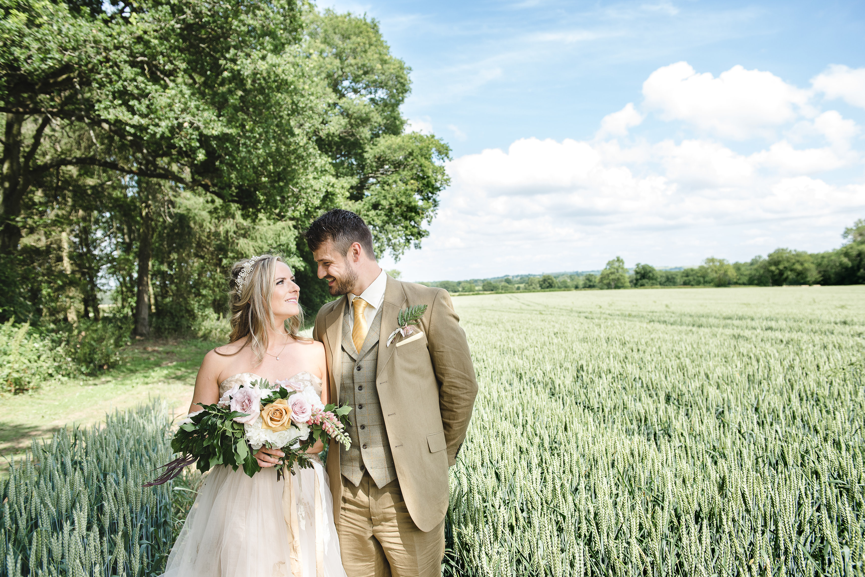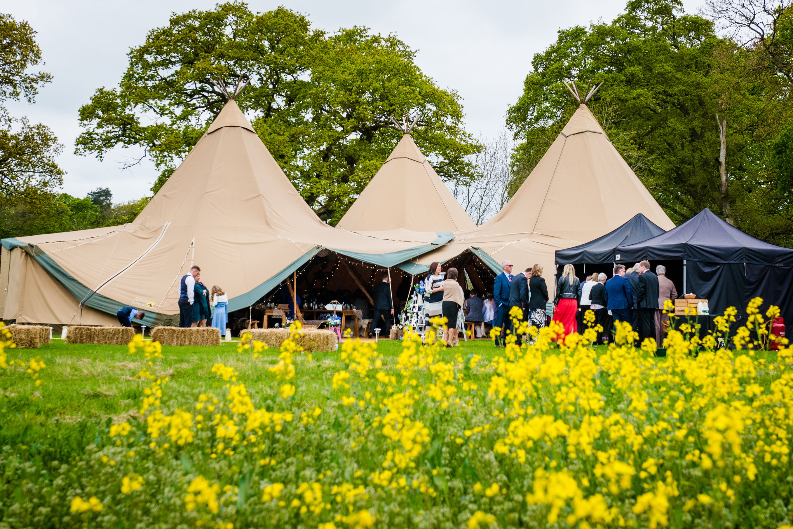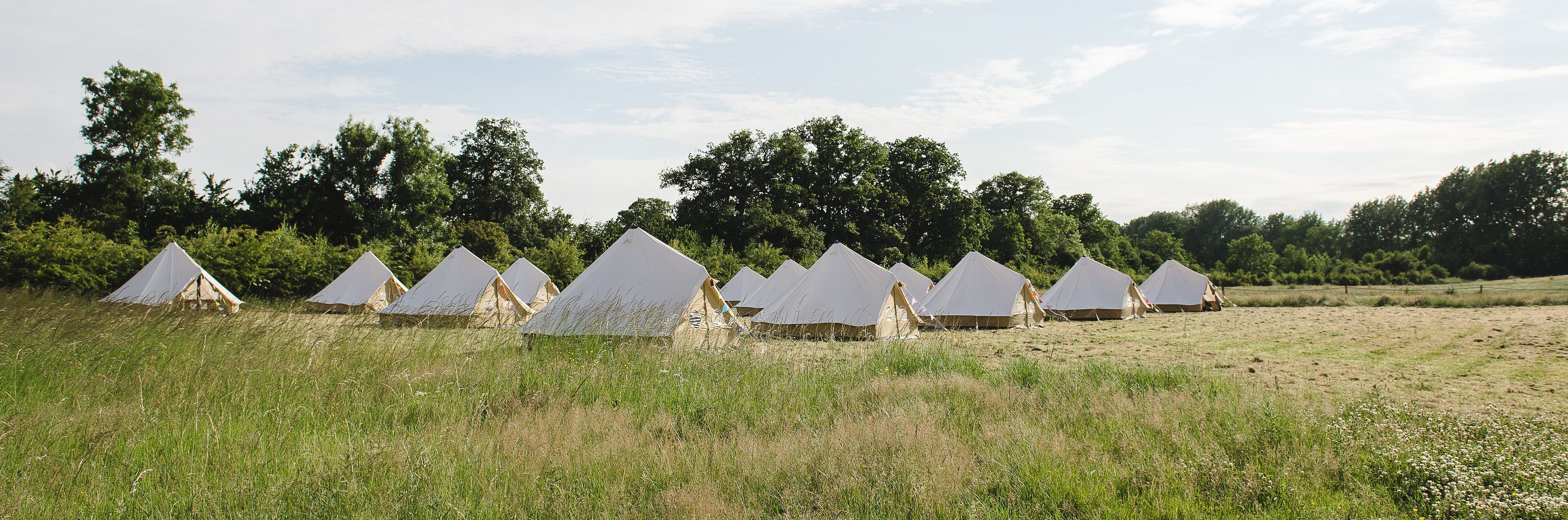 After the ceremony, you come out of the woods into the wedding field with beautiful views where you put up your marquee from a selection of tent suppliers. All within easy reach of our glamping areas and The Barn.